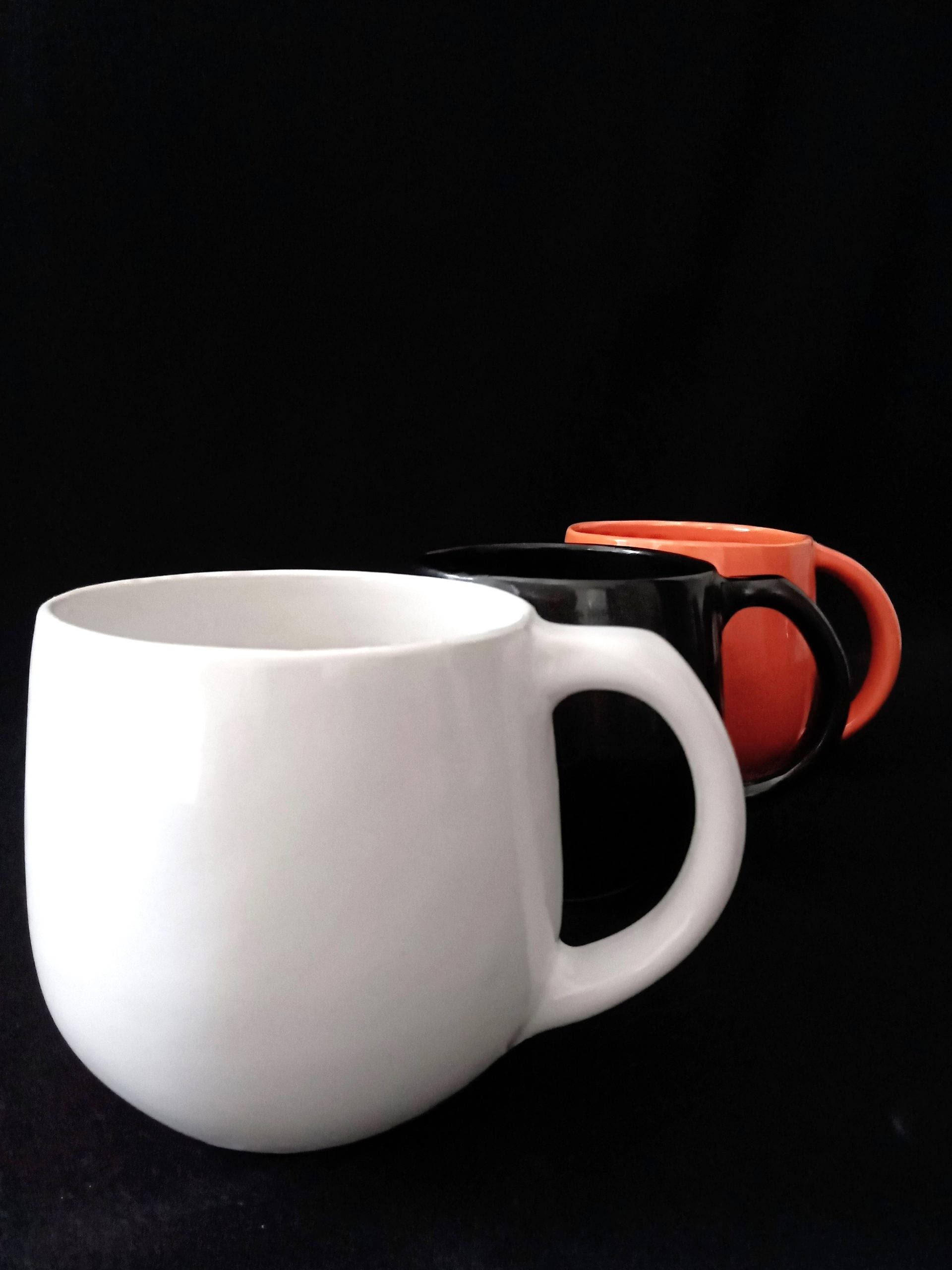 Ja myös kaksivärisena, kahva erivärisenä, esim. valkoinen + oranssi kahva tai valkoinen + musta kahva…
